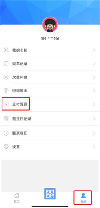 1、在我的页面中点击支付管理按钮;