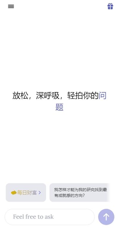 1、进入软件后我们可以通过提问的方式进行测算,放轻松、深呼吸输入你想要咨询的问题;