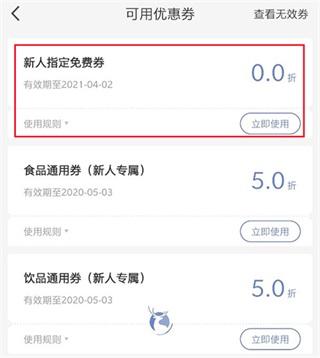 然后在我的-优惠卷-打开,查看新人指定免费卷,点击立即使用。