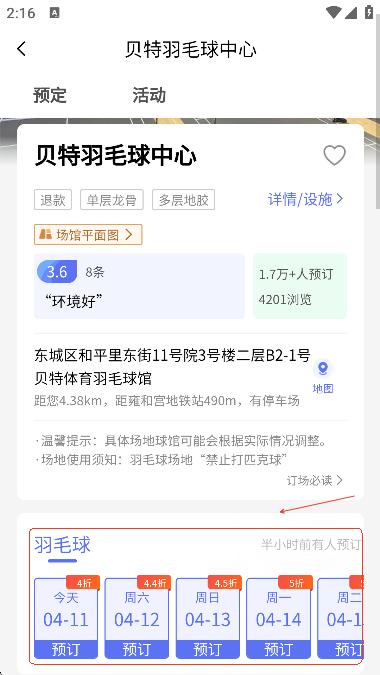 优惠活动:经常举行各类优惠活动,如折扣订场、免费体验等,让用户在享受运动乐趣的同时也能节省开支。