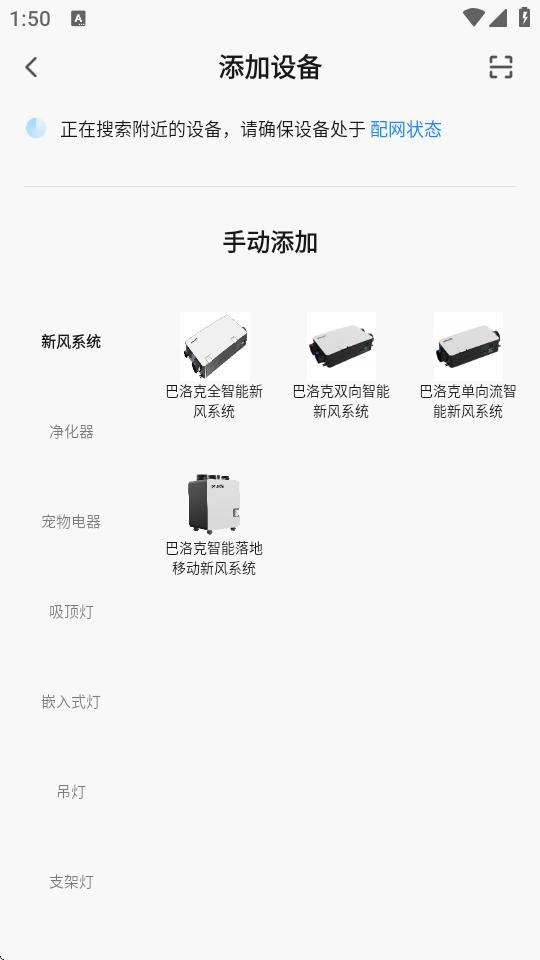 1、支持巴洛克系列智能新风系统、大眼萌系列智能净化器、智能照明、宠物电器等产品添加与设备控制。