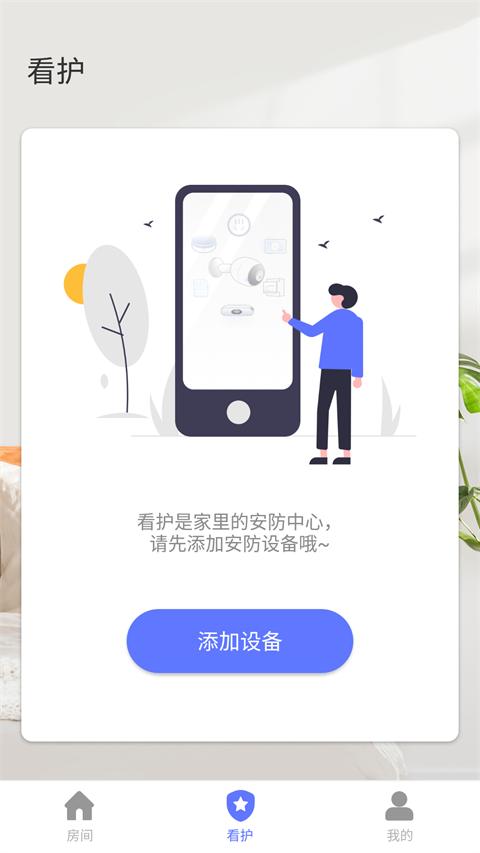 1、在本站下载并安装软件,首次进入该软件需要使用手机号或邮箱号进行注册/登录,登录后默认会进入软件的“房间”页面,点击右上角的加号按钮并选择“添加设备”。