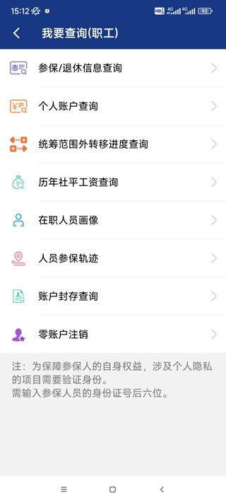 2、完成上述功能后就可以进入应用首页处点击【业务查询】,然后再点击【个人账户查询】,看一下自己本年已经缴费的是哪几个月