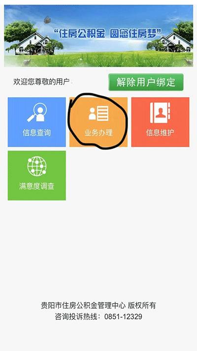 1、下载打开贵阳公积金app选择业务办理;