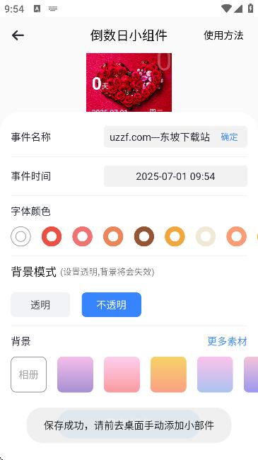 5、保存完成后,系统会弹出“保存成功”提示,你可直接返回桌面查看并使用新创建的打卡小组件。