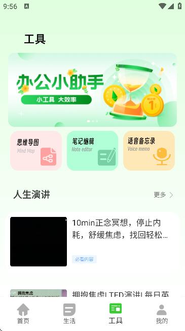 7、工具栏中则是提供了诸如【思维导图,笔记,语言备忘录】等实用功能。以及励志演讲等优质资讯。