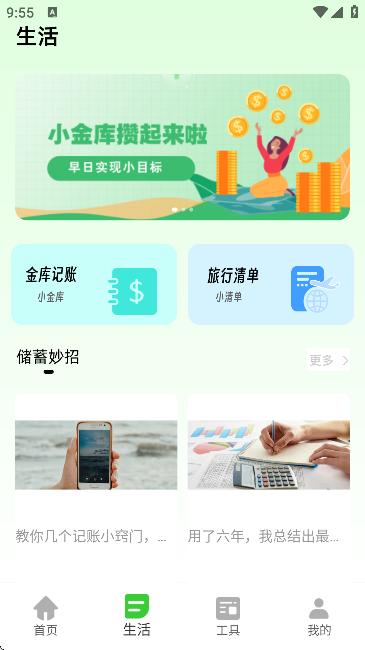 6、其次软件中还提供了金库记账和旅行清单功能,如图所示,可帮助用户在生活开支和旅游出行上有更加便利的体验。
