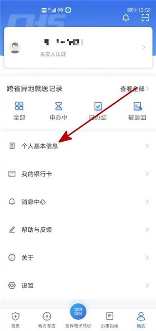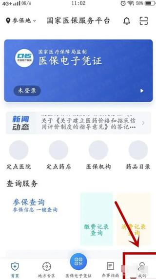 在手机上打开国家医保服务平台,点击右下角我的。