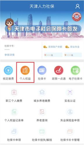 1、打开津社保app,登录账号后,点击个人权益。