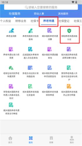 2、点击“更多服务,找到“养老待遇-领取养老待遇资格认证”;