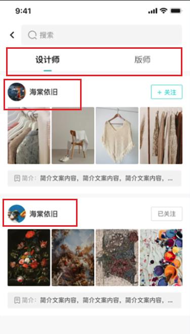 3、在发现页中可以浏览到关于设计师,或者版师们分享和发布的作品,