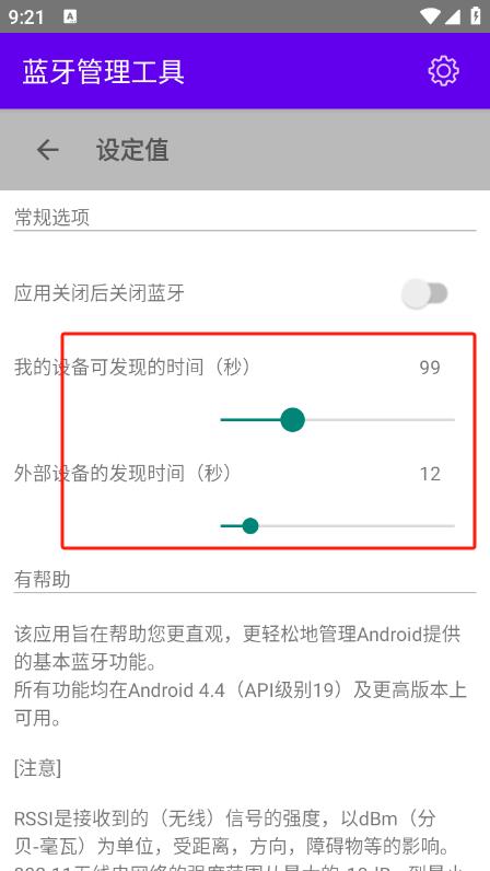 7、发现时间设置:可设置蓝牙设备的发现时间,方便用户根据自己的需求进行控制。
