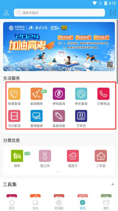 5、在发现页面都是本地的服务内容哦,可以线上办理订餐等等