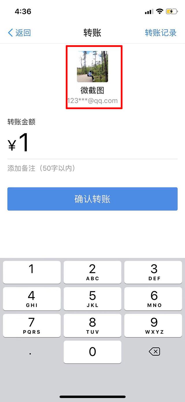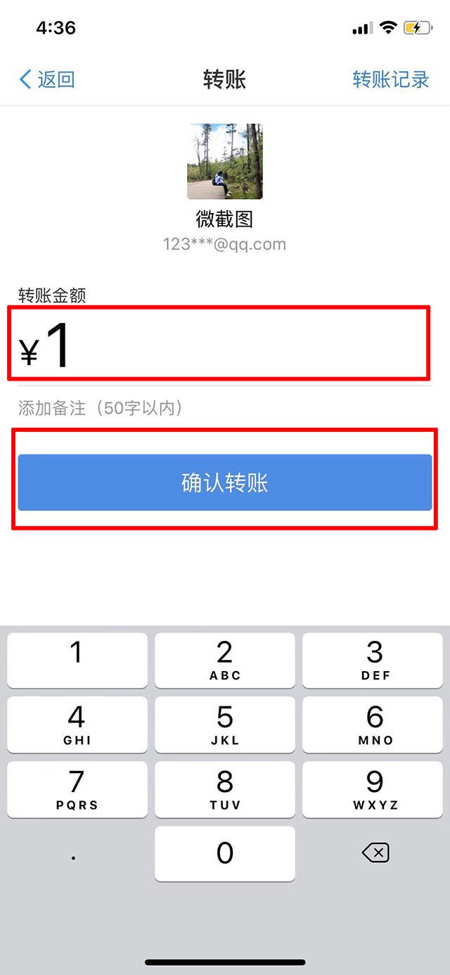 4.返回支付宝转账页面,输入金额,点击确认转账按钮
