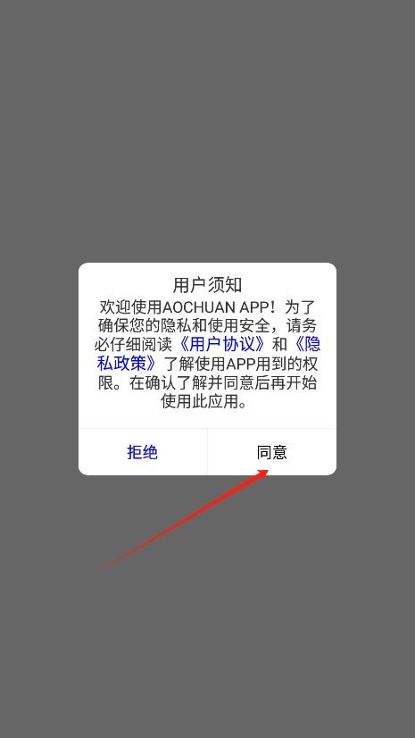 2、进入后阅读并同意奥川云台app的用户协议